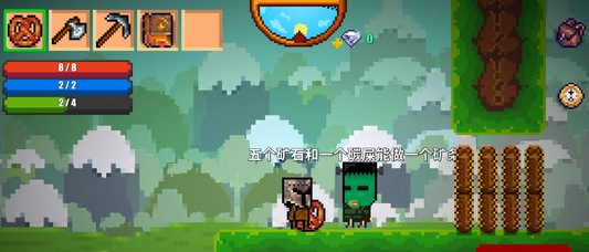 像素生存游戏2铜条怎么获得?像素生存游戏2铜条获得攻略、接下来和小编一起看看想要获得铜条,就要先解开一个特殊的“熔炉”区域,它的位置在像素镇中“副本传送人”的上方,我们向上跳跃就能看到。不过门口是封住的,这门口的守门大爷会跟你对话,他需要一个椒盐卷饼才会给我们开门。椒盐饼需要合成才行,首先我们要找像