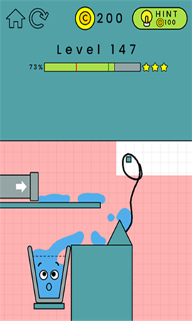 happyglass147关怎么过?看到这关小编开始不知道怎么过,后来看到那个小方块才明白过关思路,小编估计应该有玩家卡在这关了,下面小编就来给大家讲解下小编的过关思路。happyglass147关攻略在第147关中水杯右边有一个巨大的长方形平台,上面有一个三角形,在水杯上方有一个平台,上面左边放了