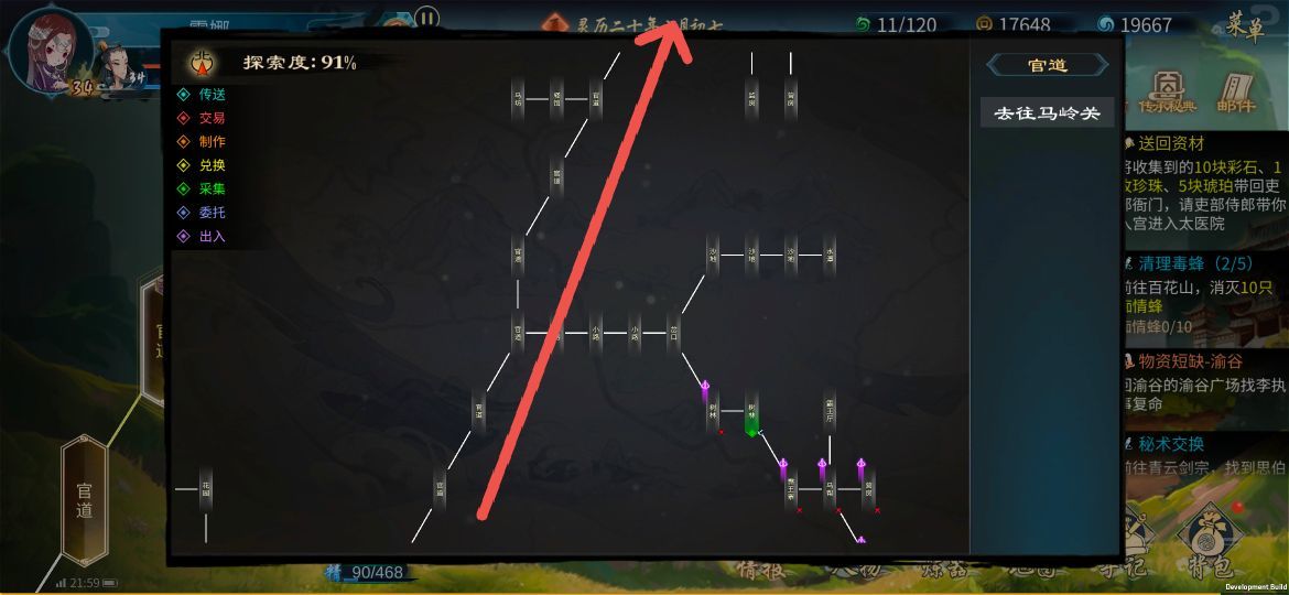 路线:上京城北方进入,解锁马岭关也可以从马岭关出来,就在出口旁边。