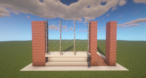 放上门,用砖块补全空隙,最后用铁栏杆装饰一下。