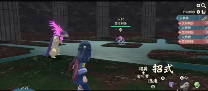 2、进入后会看到被火焰保护的宝可梦席多蓝恩,不可以直接作战。