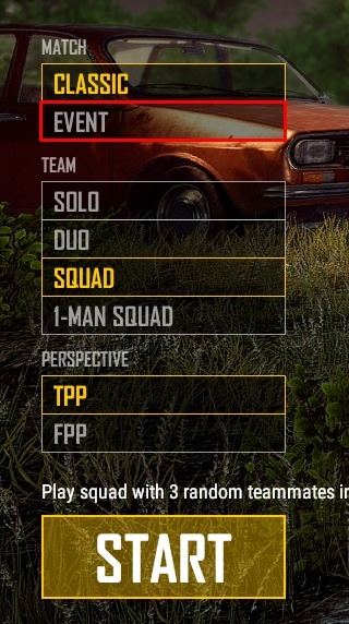 请大家注意, 第一次活动模式只会提供Erangel地图的TPP模式,以确保高效率的匹配。 任何拥有PUBG玩家都将可以享受到本模式。为了进入活动模式,请点击主菜单左下角的活动模式(event mode)按钮。活动模式不会影响到玩家的段位积分,每次比赛结束之后会提供BP奖励。