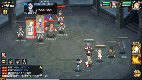 打法:本关并不是随便玩玩就能通过的了,需要很好的运气和很好的装备及队伍硬实力,新手玩家到这里其实可以放弃不打了,因为目前也没什么太好的奖励,没必要找罪受。如果硬要打的话,首先需要将黑白两个信徒同时消灭,此时不要把BOSS打到半血以下,否则BOSS会狂暴开大招,每人7500+的全队伤害绝对是受不了的。消灭两个信徒后,可以集火BOSS,把BOSS打倒。由于BOSS杰拉尔高攻高敏基本不吃控制但是血不多,所以此时挺住2回合内把BOSS秒掉治疗不躺,胜利就基本属于你了,但是2回合内打不死就基本GG了。不过打起来就知道,以上条件比较苛刻,要运气非常好,队伍实力也比较高才能实现,所以不推荐新手玩家挑战。