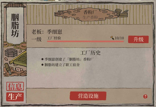 1、打开印刷厂或者香粉厂,然后点击营造设施,就能看到职工宿舍了。