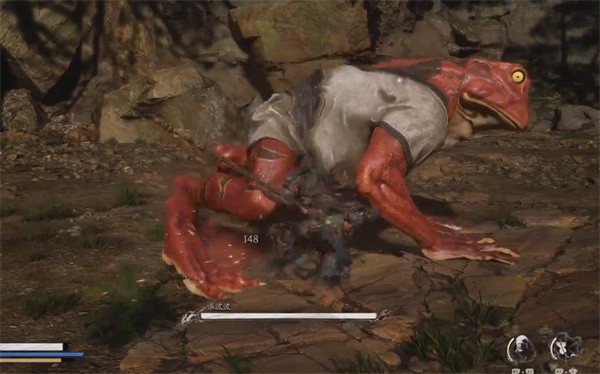 2、他和其他的蛤蟆精一样会使用招式吐舌头攻击。玩家只需保持警惕,灵活躲避即可。它的吞噬技能要格外小心,一旦被吞,低血量玩家将面临秒杀的风险。
