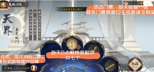 进入红莲华冕活动界面后,首先会被活动界面的颜值震撼,比起来以往阴阳师的活动,红莲华冕的界面看起来的确很有优势,美术风格还是不错的。活动玩法分为2个大部分,鬼域讨伐里用莲花转动切换不同副本,使用门票莲花酥通关,进入后玩法类似于自走棋回合制玩法,难度不算特别高。另一个部分圣莲池基本上可以理解为挂机收菜。